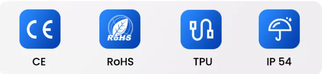 C) The insulation of the charging cable is made of TPU ( thermoplastic polyurethane). As a result, the sheathing is comparatively thin and light with the same temperature insulation.